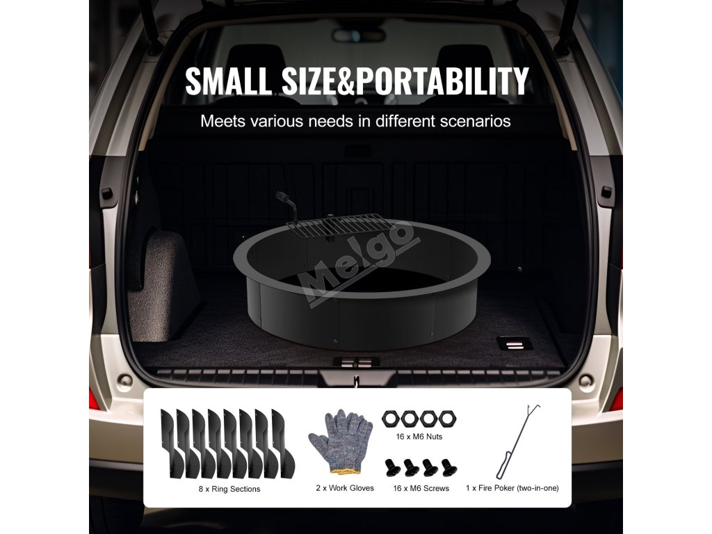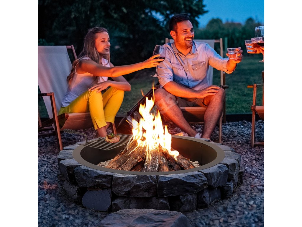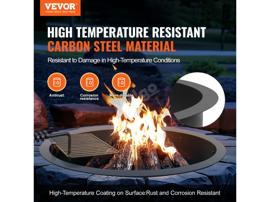 Tento krbový prstenec je vyroben z uhlíkové oceli odolné vůči vysokým teplotám s matně černou práškovou povrchovou úpravou a je odolný vůči korozi a rzi. Poskytuje dostatek prostoru pro růst plamene, což je ideální pro kempování v parku nebo na zahradě, a vytváří hřejivou atmosféru pro sváteční večery nebo setkání s přáteli.