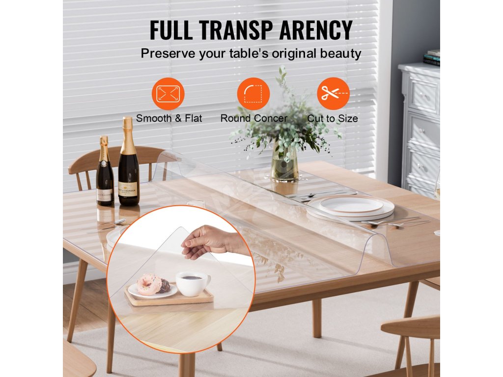Náš průhledný chránič stolu poskytuje vynikající ochranu a zlepšuje estetiku vašeho stolu. Poznejte dokonalost vysoce kvalitních, měkkých a hladkých materiálů, které jsou vyrobeny tak, aby vydržely, a snadno se čistí. Ať už se jedná o jídelní stůl, kuchyňskou linku, pracovní stůl nebo o podložku pod podlahu či spotřebič.