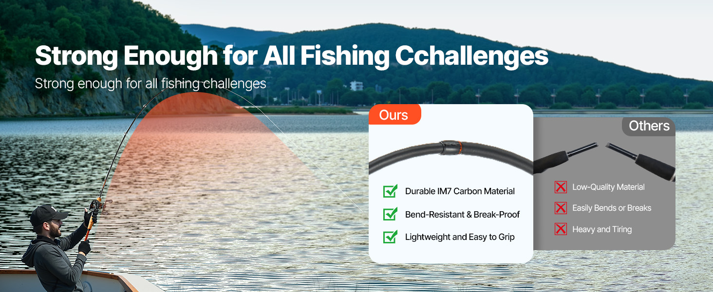 Tento prut je vyroben z odolného uhlíkového vlákna IM7, má vynikající odolnost proti ohybu a je méně náchylný ke zlomení. Lehká konstrukce zajišťuje pohodlí při dlouhodobém používání, usnadňuje zvládání silných tahů ryb a zvyšuje celkový zážitek z rybolovu.