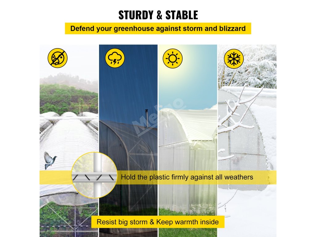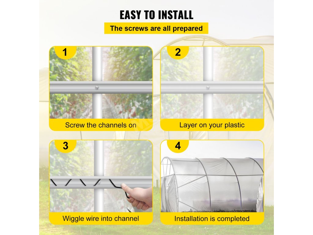 Náš kroucený drát a uzavírací kanál dokáže pevně udržet plastovou fólii nebo stínicí tkaninu na rámu skleníku, v létě odolává silným bouřkám a v zimě udržuje skleník v teple.