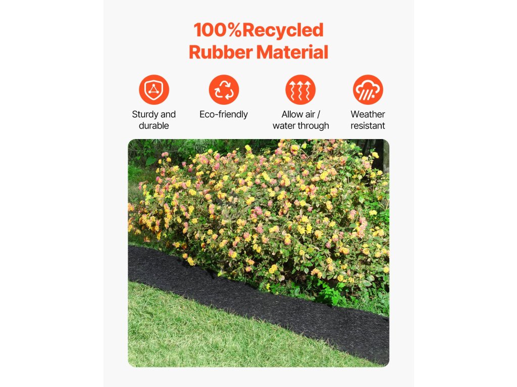 Tento gumový mulčovací valec je vyrobený z vysokokvalitnej recyklovanej gumy a odoláva vplyvom počasia počas všetkých ročných období. Je trvanlivý a odolný voči poveternostným vplyvom, odoláva opotrebovaniu a je účinnou alternatívou tradičného mulčovania, čím vám ušetrí čas a peniaze na odstraňovanie buriny.
