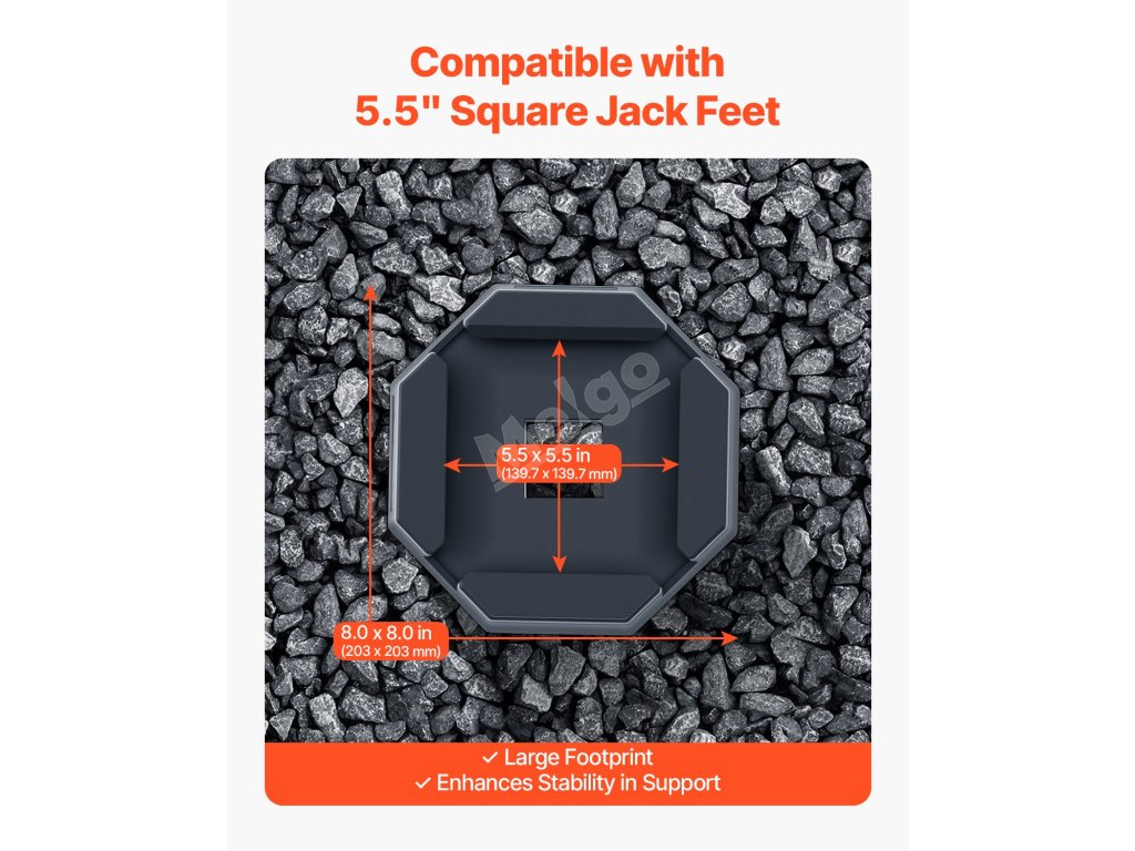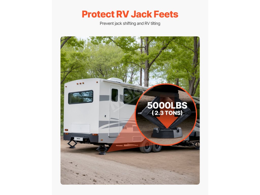 Čtvercové vyrovnávací podložky pro obytné vozy (4 ks) jsou vyrobeny z vysoce kvalitní pryže s odolnou konstrukcí odolnou proti protržení a uklouznutí. Tyto podložky pro zvedáky RV s nosností 5 000 liber na podložku zvyšují stabilitu na nerovném povrchu. Součástí balení je mazivo pro snadnou instalaci.