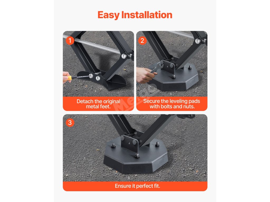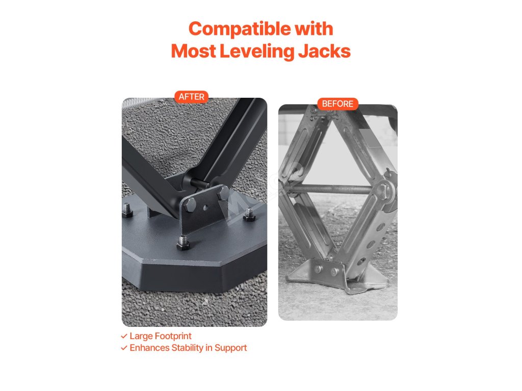 Tyto vyrovnávací podložky pro obytná vozidla (4 ks) jsou vhodné pro většinu zvedáků pro obytná vozidla, zejména nůžkové zvedáky. Jsou vyrobeny z vysoce kvalitní pryže a nabízejí odolnost proti roztržení a protiskluzovou ochranu. Naše podložky pod zvedáky RV s nosností 5 000 liber na podložku zvyšují stabilitu na nerovném terénu a dodávají se s příslušenstvím pro snadné nastavení.