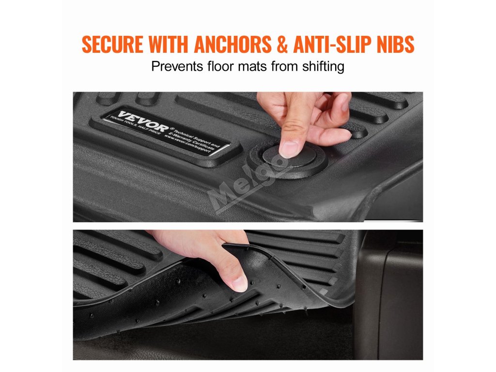 Podlahové rohože sú vybavené originálnymi klipmi na bezpečné umiestnenie a 3D textúrou na zlepšenie protišmykových vlastností, a to aj v daždi. Zvýšené okraje poskytujú vodotesnú ochranu pred dažďom, blatom a snehom, zatiaľ čo protišmykové kolíky zaisťujú, že rohože zostanú na svojom mieste, a poskytujú tak úplný pokoj.