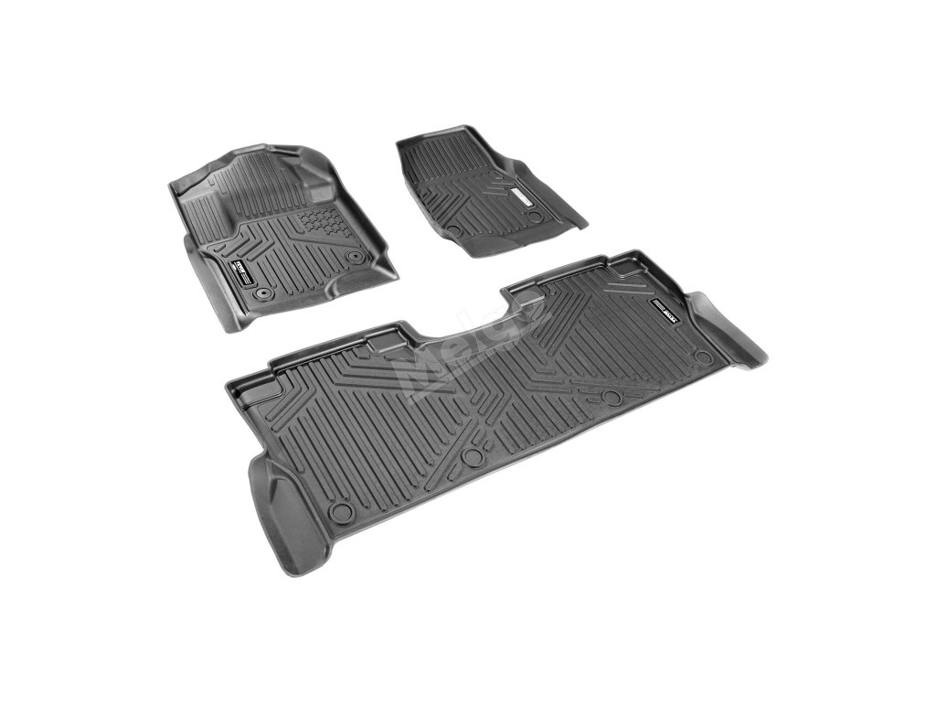 Pryžové rohože pro F250–F550 2017–2025 crew cab, 3 ks, černé