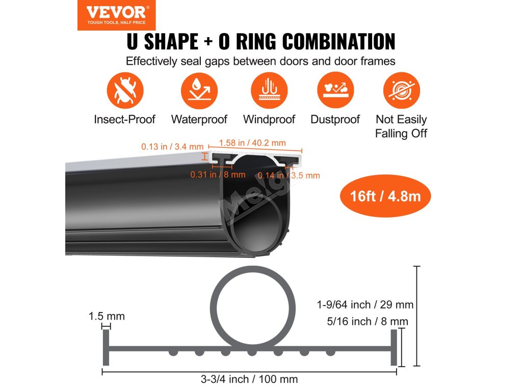 Naše těsnění garážových vrat 16 stop se může pochlubit inteligentní kombinací U+O-kroužků, která účinně udržuje vaše vnitřní prostory suché, čisté a pohodlné. Je to obránce proti vzduchu, vlhkosti a prachu. Navíc snižuje pravděpodobnost vniknutí venkovního větru a zlepšuje izolaci.