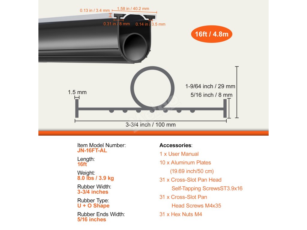 Toto těsnění pro garážová vrata se dodává včetně držáků kolejnic, šroubů a návodu pro snadnou instalaci. Vzhledem k tomu, že je sada hliníkových držáků kolejnic navržena po částech, zajistěte při instalaci přesné vyrovnání, abyste předešli případným problémům. Nejsou zapotřebí žádné složité nástroje ani odborné dovednosti.
