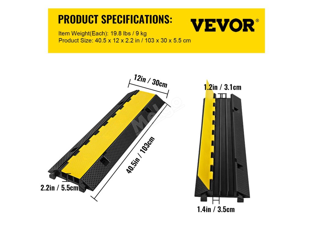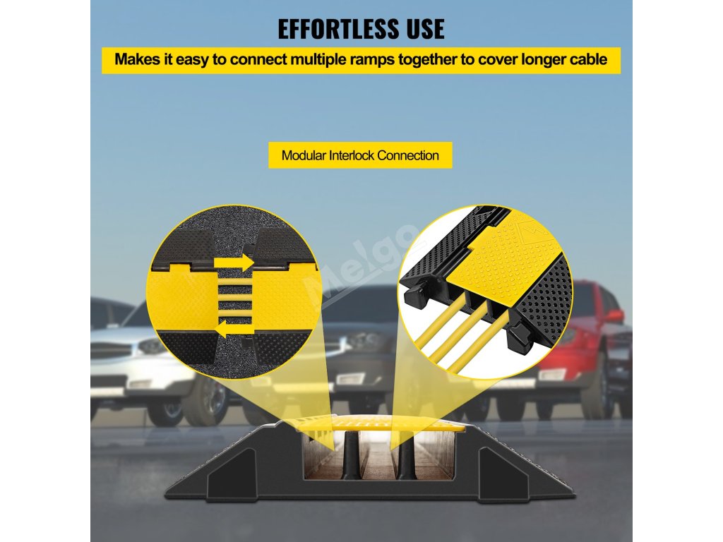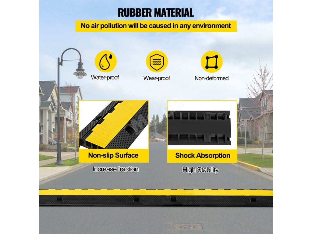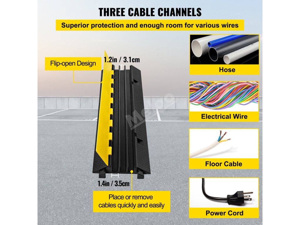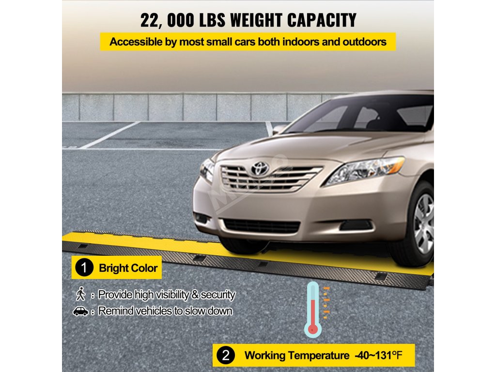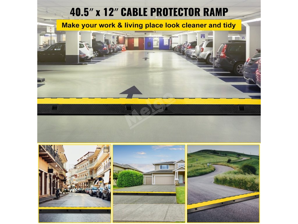 1.kanálky pryžového příjezdového hrbolu o rozměrech 4" šířky x 1,2" výšky / 3,5 x 3,1 cm poskytují dostatek prostoru pro elektrické kabely, vedení, hadice a prodlužovací kabely.