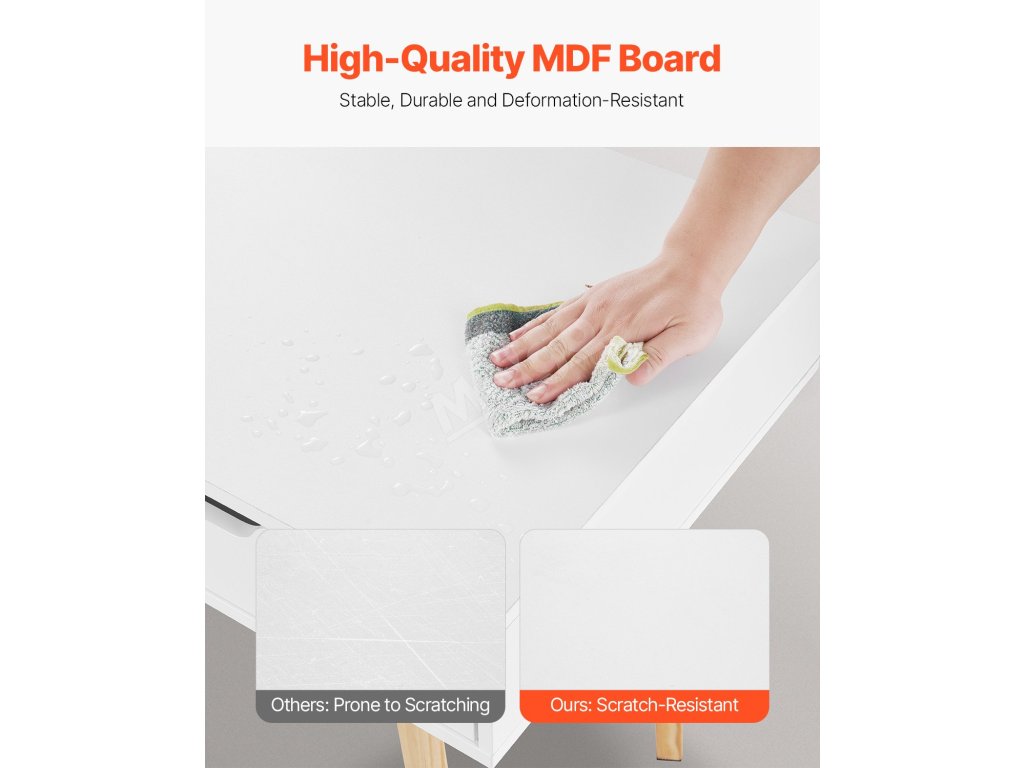 Tento stůl je vyroben z MDF a je odolný proti deformacím a opotřebení, takže je ideální volbou pro dlouhodobé používání.