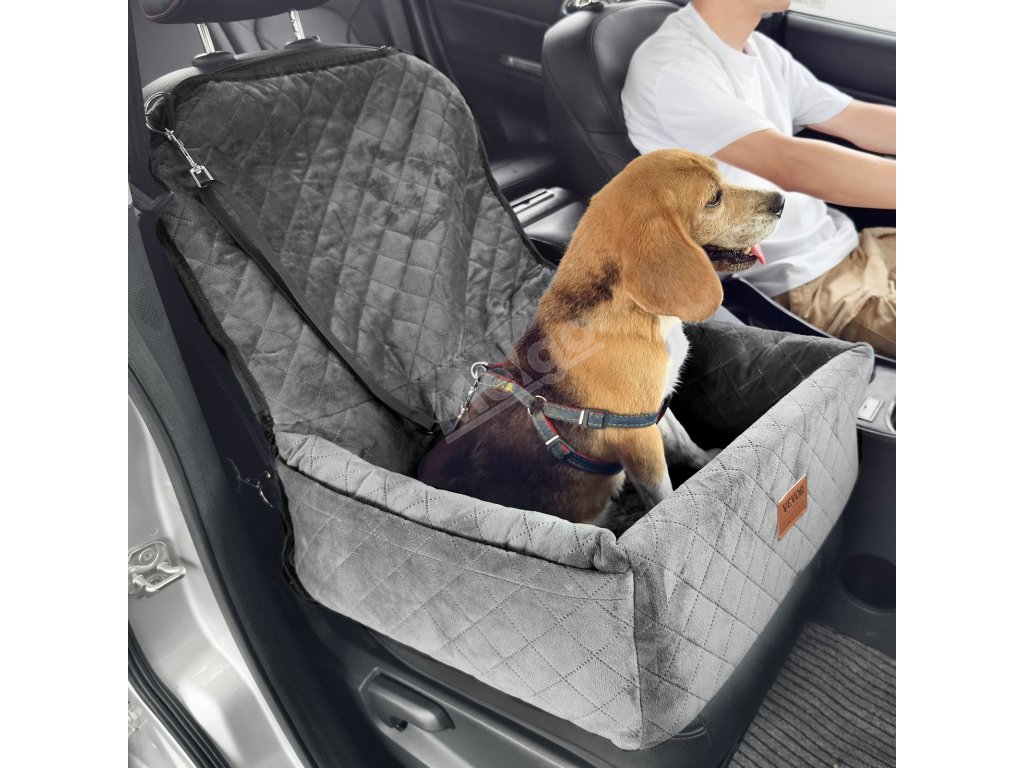 Psí autosedačka do auta, kapsa, poutko, pěna+pp, do 40lbs, šedá