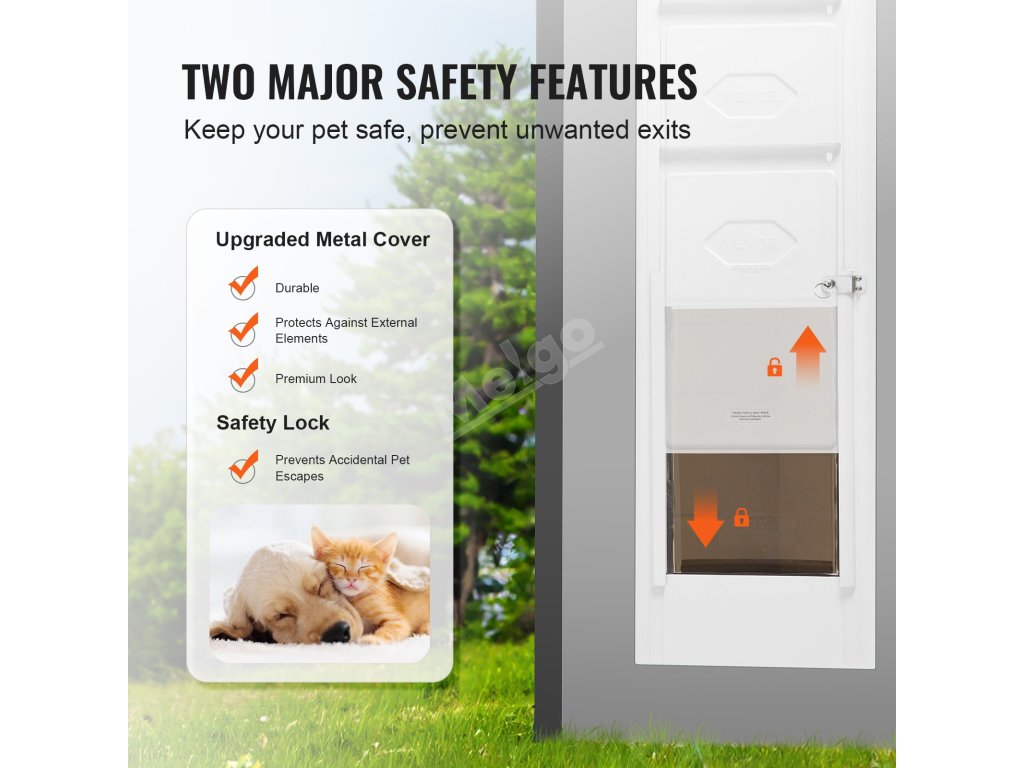 Klapka dvířek pro psy má rozměry 10 1/4" x 16 1/4" a poskytuje dostatek prostoru pro snadný vstup a výstup vašeho domácího mazlíčka. Nechte svého domácího mazlíčka volně prozkoumávat venkovní prostředí a zároveň si užívejte pohodlí a bezpečí v interiéru, a to vše díky pohodlí naší klapky na dvířka pro domácí mazlíčky.