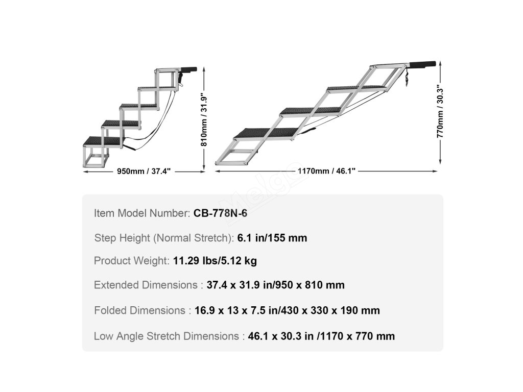 Díky nastavitelné výšce skládacího schůdku pro domácí mazlíčky je vhodný pro kočky a psy různých velikostí a je užitečný v různých situacích.
