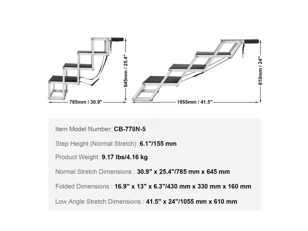 Díky nastavitelné výšce skládacího schůdku pro domácí mazlíčky je vhodný pro kočky a psy různých velikostí a je užitečný v různých situacích.
