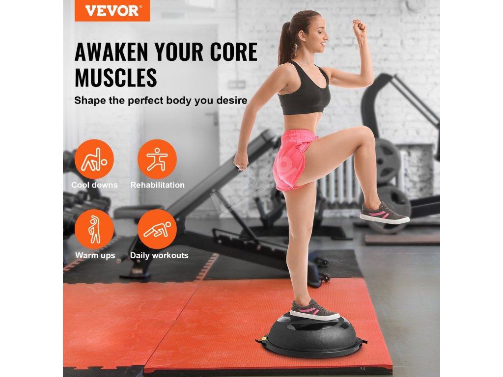 Tento balanční trenažér dokáže uvolnit potenciál vašeho těla, zlepšit sílu, rovnováhu a flexibilitu. Je ideální pro zvýšení celkové vitality a maximalizaci účinnosti tréninku. Náš půlkruhový stabilizační míč je dodáván se dvěma odnímatelnými cvičebními lany s měkkými pěnovými rukojeťmi.