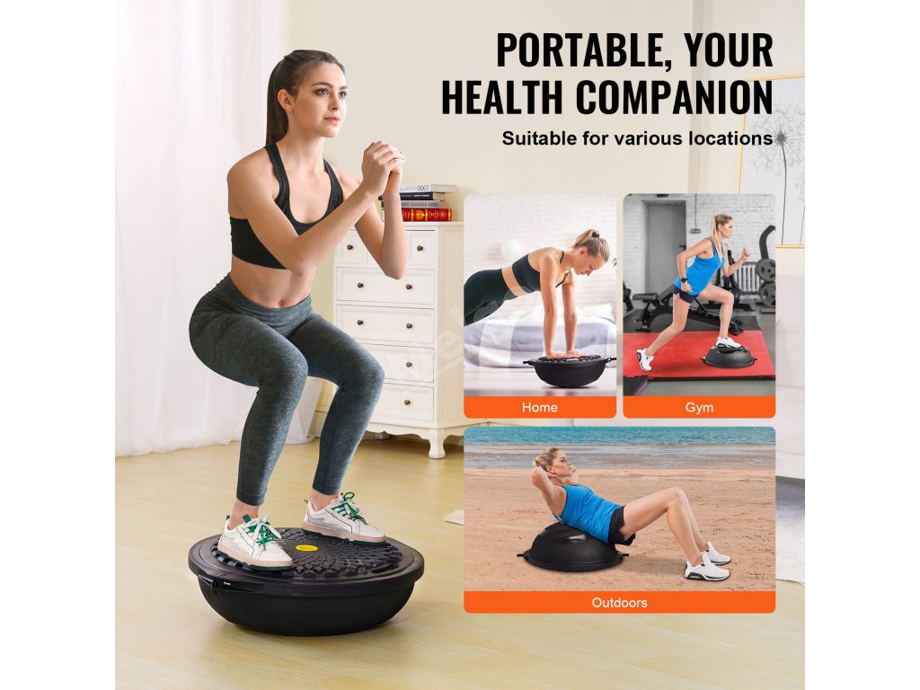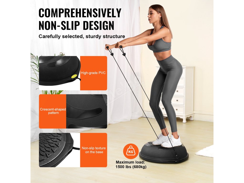 Půlkoule na cvičení 26 inch 1500lbs s pásy a pumpou, černá