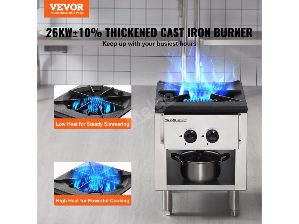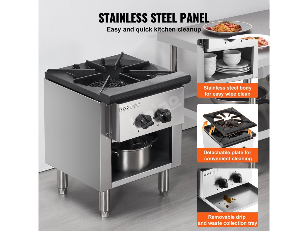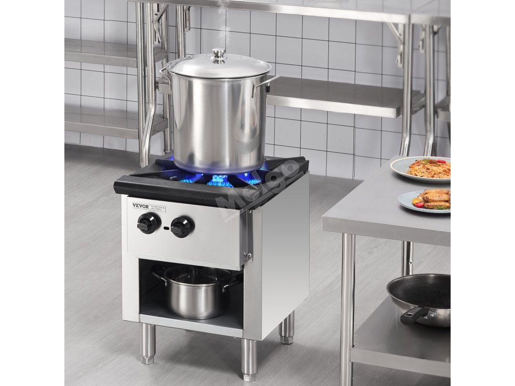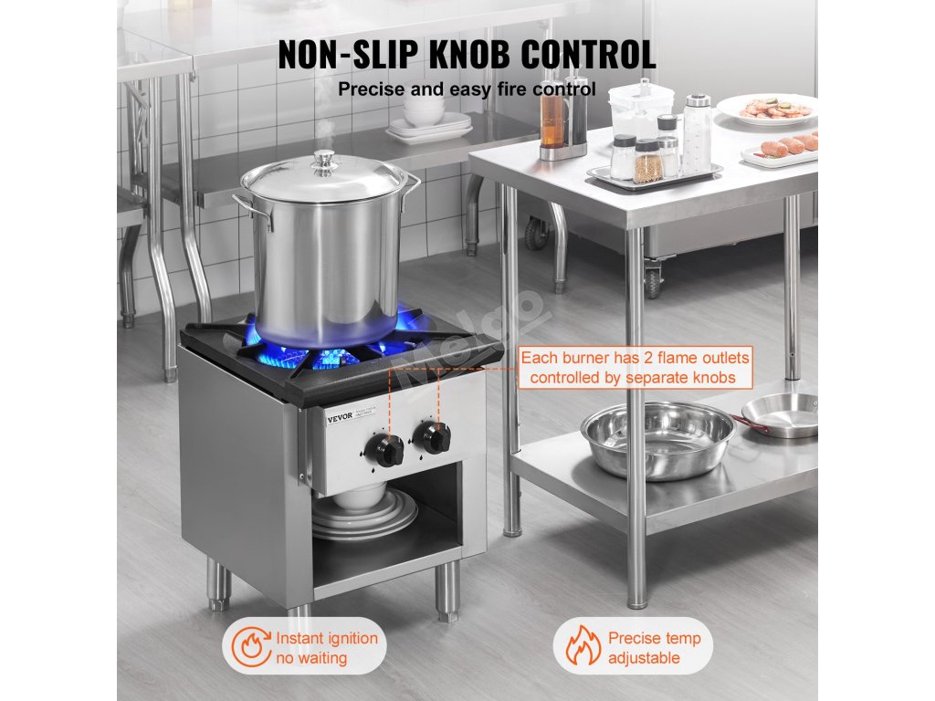 Komerčný plynový sporák je vybavený ergonomickým gombíkom na široké nastavenie plameňa. Vyberte si požadovaný plameň, okamžite ho zapáľte a použite ergonomický gombík na ovládanie bez námahy. Ľahko pripravíte rôzne pokrmy.