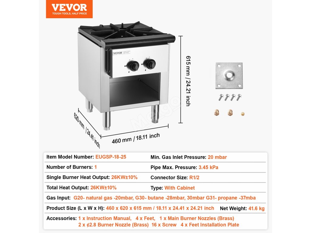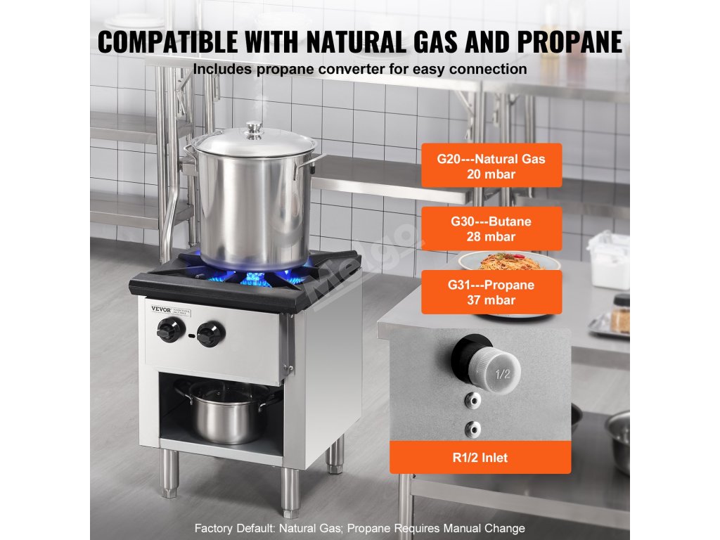 Pultový plynový sporák se skříní, 26KW, propan a zemní plyn, nerez