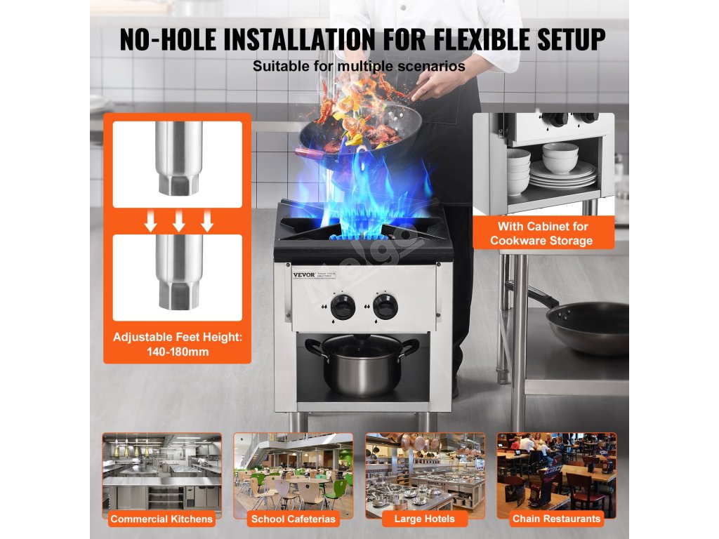 Inštalácia bez otvorov na okamžité použitie. Vďaka úložnej skrinke je plynový sporák ideálny pre reštaurácie a potravinárske zariadenia. Ideálny pre ústavné kuchyne, školské jedálne, veľké hotely, podnikové jedálne, siete reštaurácií a stredne veľké stravovacie zariadenia.