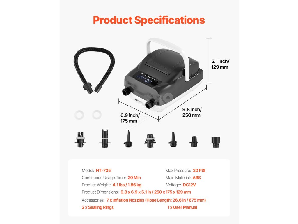 Tato elektrická pumpa na paddleboard je určena pro outdoorové nadšence, nafoukne se na tlak 12 PSI za méně než 9 minut a má funkci vypouštění vzduchu pro snadné skladování. Díky digitálnímu displeji, paměťové funkci a lehké konstrukci je ideální pro kempování a cestování.