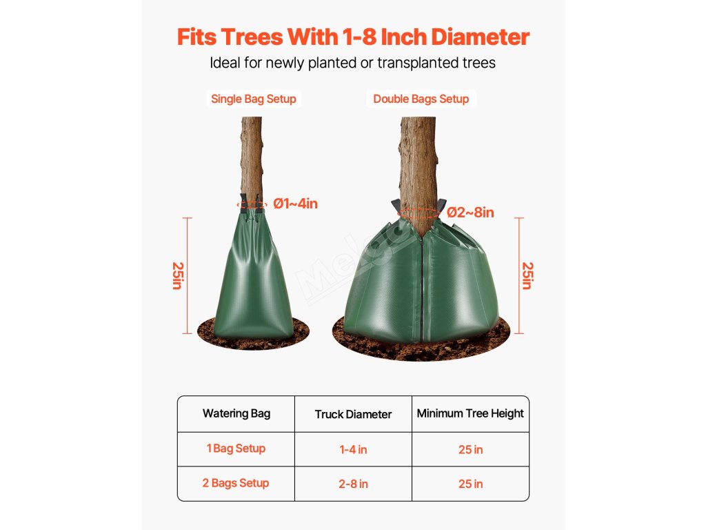 Tento zavlažovací vak na stromy je ideální pro nové výsadby nebo stromy citlivé na sucho v zahradách a sadech a zajišťuje účinné a stabilní zavlažování. Velký vak o objemu 20 galonů (75,7 l) pomalu uvolňuje vodu po dobu 5 až 9 hodin, čímž hloubkově hydratuje kořeny stromů a podporuje jejich zdravý růst.