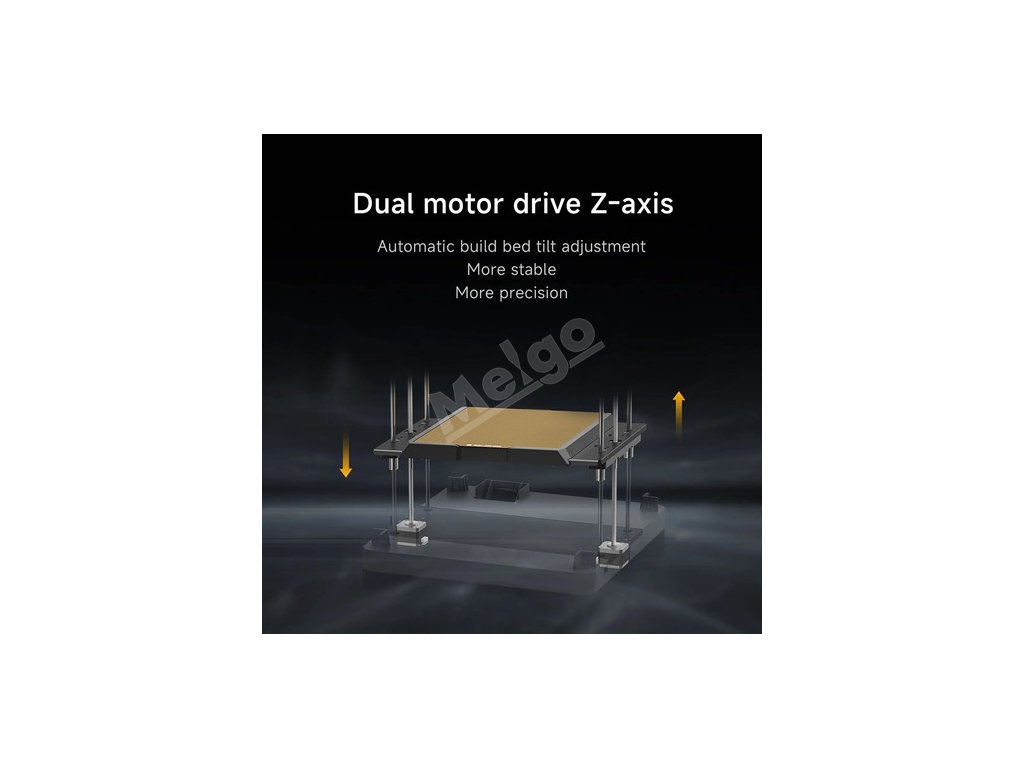 Stabilní a rychlá 3D tiskárna CoreXY. O spolehlivost se starají dva motory osy Z a nejsou zde žádné řemeny. Celokovový rám a samonapínací řemeny XY. Ovladače TMC2240 pro tichý provoz. Rychlost až 600 mm/s, zrychlení 20000 mm/s². Automatická kalibrace vstupního formeru, rychlý tisk bez snížení kvality.