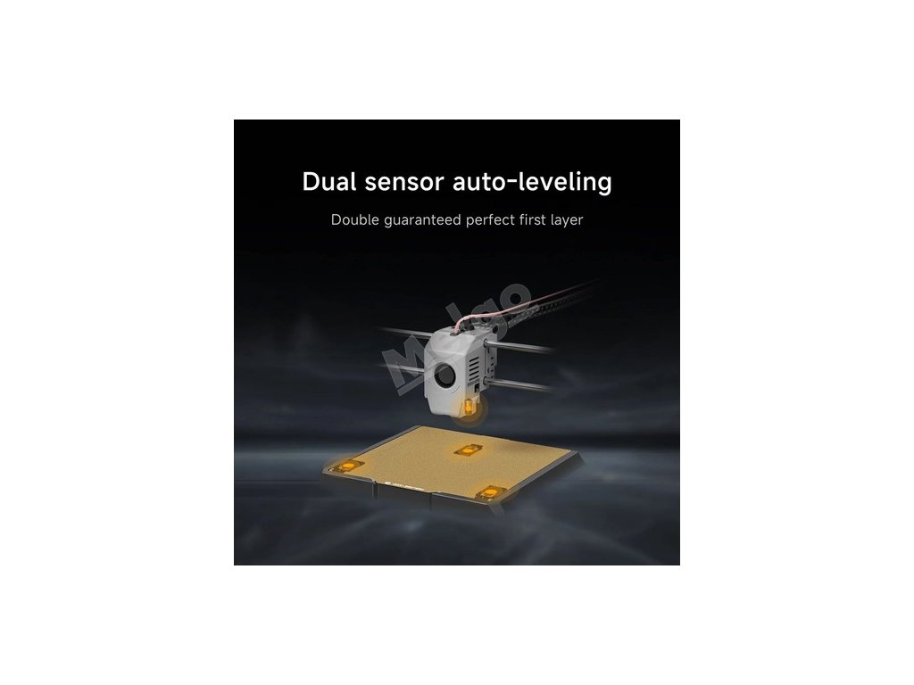 Automatické duální senzory pro přesné první vrstvy. Hallův snímač chodu vlákna na vstupu extrudéru a detekce zamotání vlákna zajišťují úspěch každého tisku.