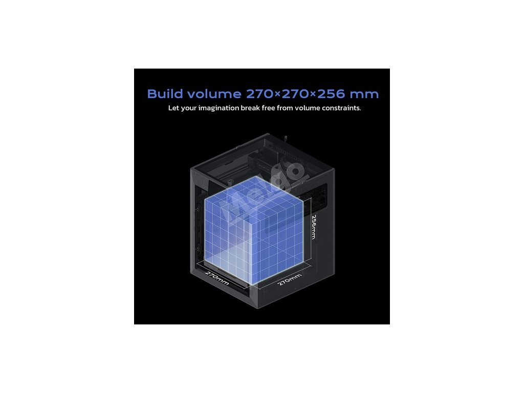 | Specifikace | Objem: 270*270*256 mm Rychlost: 600 mm/s Zrychlení: ≤20 000 mm/s² Teplota vyhřívaného lůžka: ≤120 °C Teplota tiskové hlavy: ≤370 °C Teplota v komoře: ≤65 °C (druhá generace) Tryska: Multimetalová integrovaná tryska |