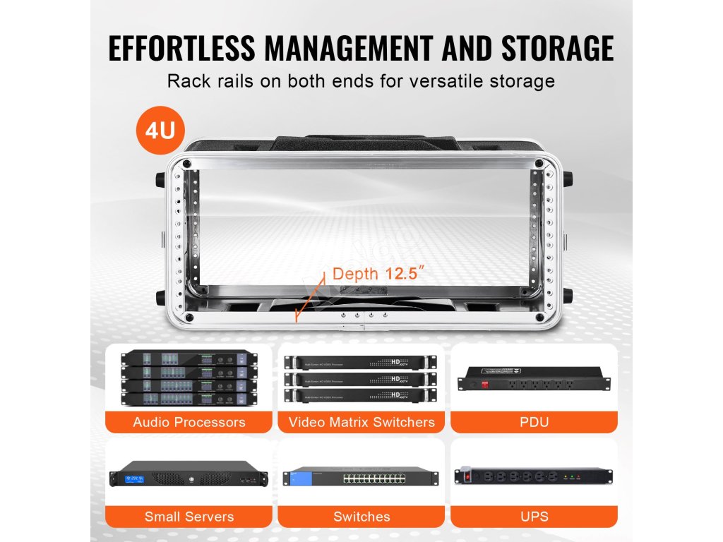Náš odolný rackový kufr chrání vaše zařízení před nárazy, prachem a vodou během přepravy. Díky snadno přístupným odnímatelným panelům, bezpečným motýlkovým západkám a stohovatelným slotům a dostupnosti ve více velikostech (2U, 4U, 6U, 8U) je náš rackový kufr ideální pro skladování a přepravu zařízení.