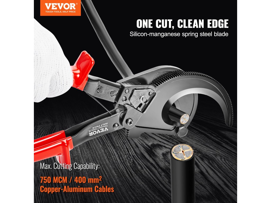 Ráčnový štípač kabelů VEVOR je vyroben z vysoce tvrdého materiálu z křemíko-manganové pružinové oceli. Udržuje ostrost čepele, což vede k hladkým a čistým řezům kabelů bez otřepů a zbytků a k delší životnosti.