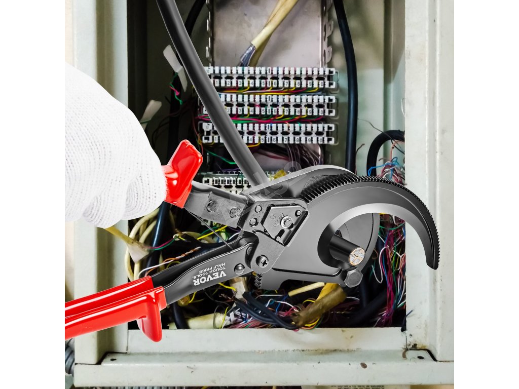 Nůžky na kabely používají ráčnovou konstrukci, která uživatelům usnadňuje stříhání kabelů. Tato konstrukce nejenže snižuje námahu uživatelů a umožňuje ovládání jednou rukou, ale také umožňuje přesnou kontrolu velikosti střihu, čímž se zamezuje plýtvání časem a materiálem.