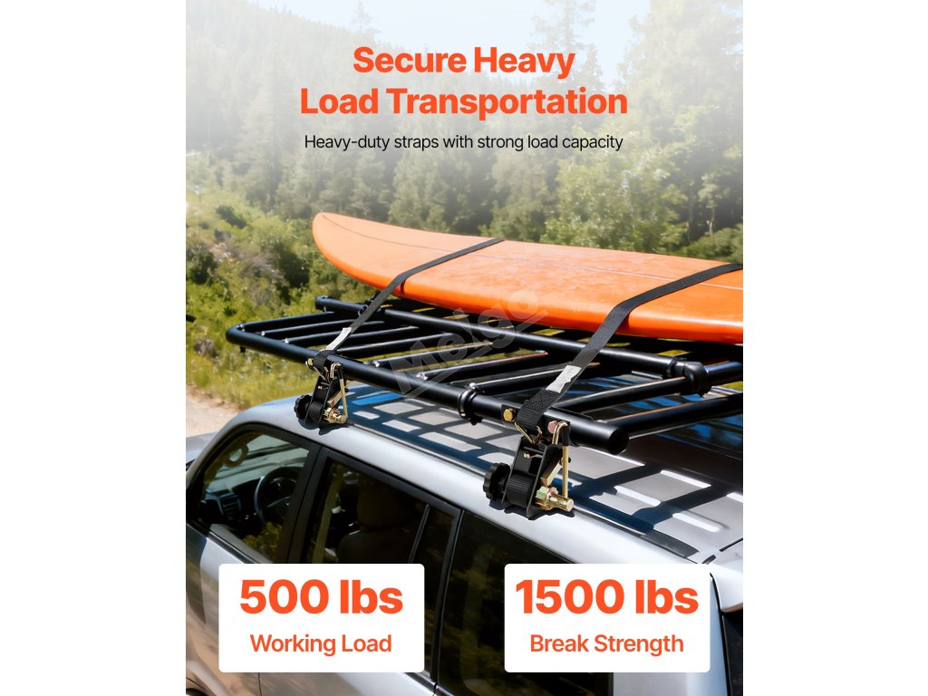 Tyto žebříkové popruhy s ráčnou zvládnou pracovní zatížení 500 lb a pevnost v tahu 1 500 lb. Pomáhají připevnit dlouhé žebříky nebo těžké vybavení ke střešnímu nosiči, aby byla vaše jízda na dálnici stabilnější.