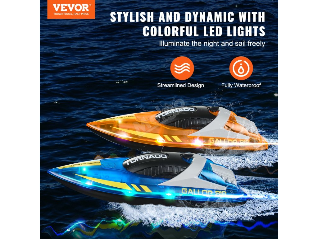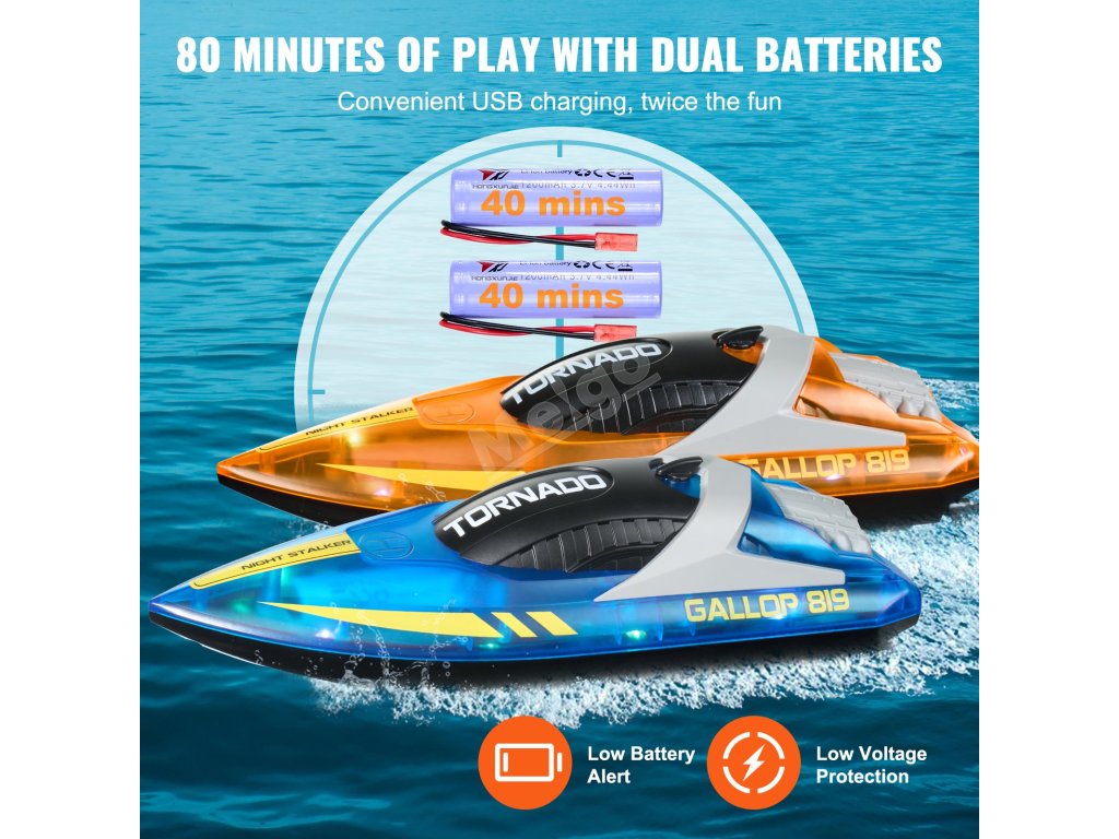 Rádiem řízená loď, 2 ks, 2.4GHz, 12 km/h, led, 4 baterie, vodotěsná
