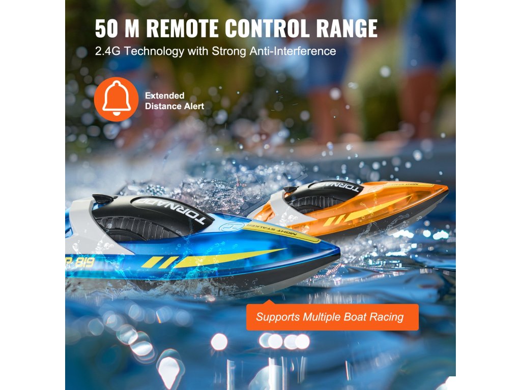 Člun na dálkové ovládání je vybaven technologií 2.4G pro bezproblémové ovládání až do vzdálenosti 164 stop/50 m. Skvěle se hodí pro závody více lodí a obsahuje upozornění na dosah, aby byla loď bezpečně v dosahu.