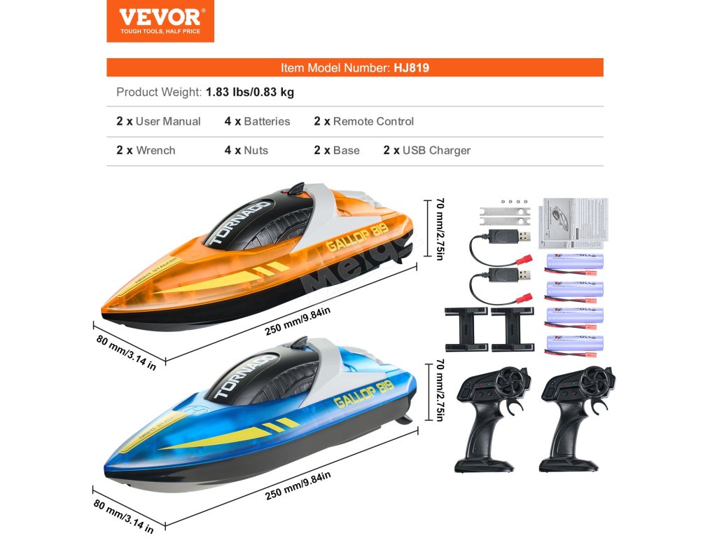Díky dvěma motorům a lodním šroubům má tento dálkově ovládaný člun silný a stabilní výkon a dosahuje rychlosti až 12 km/h. Je ideální pro zvýšení vzrušení a zábavy při jakékoli vodní aktivitě.