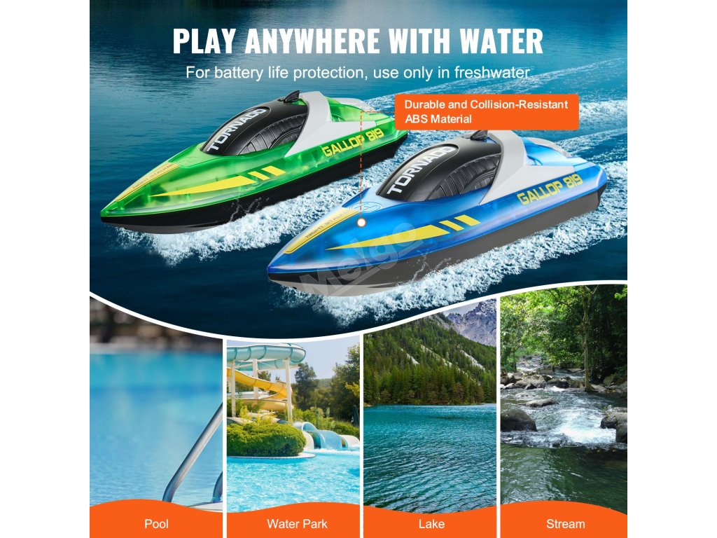 Tento rychlý RC člun je vyroben z odolného ABS a je plně vodotěsný, takže zvládne náročné podmínky a odolá nárazům. Je spolehlivý pro dobrodružství na zahradě i v přírodě.