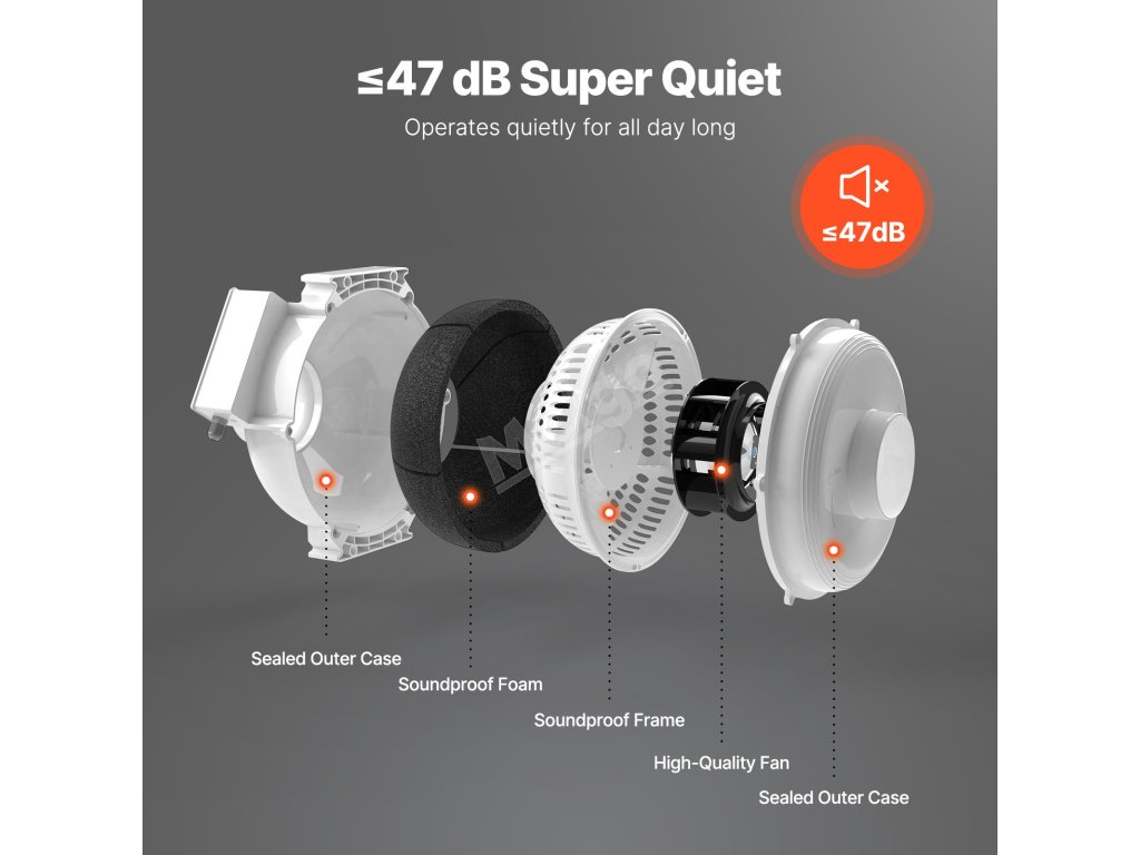 Tento ventilátor na zmierňovanie radónu, ktorý je navrhnutý pre pokoj, pracuje s hlučnosťou len 47 dB, čo zaručuje, že váš spánok a práca nebudú rušené a vy si budete môcť užívať pokojné životné prostredie.