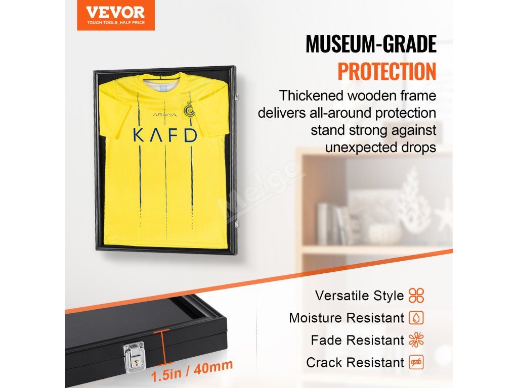 Tato vitrína na dresy je ideální pro vystavení různých sportovních dresů včetně fotbalových, basketbalových, fotbalových, baseballových atd. Je také ideální pro vystavení dalších typů memorabilií a sběratelských předmětů, jako jsou podepsané fotografie, středoškolské diplomy, pamětní medaile a další.