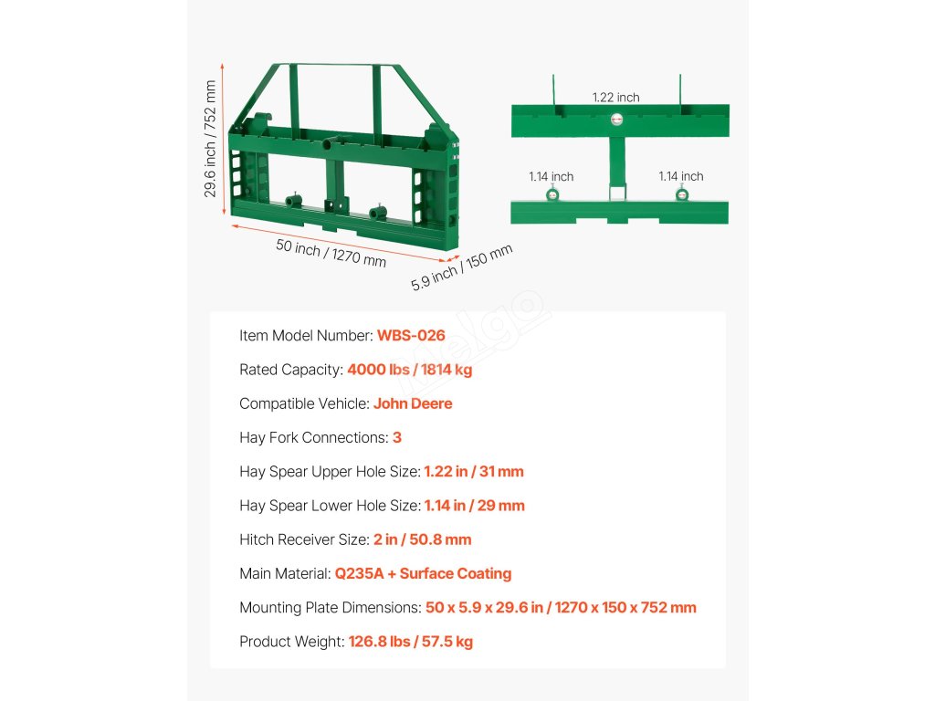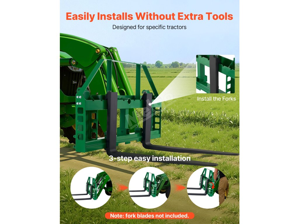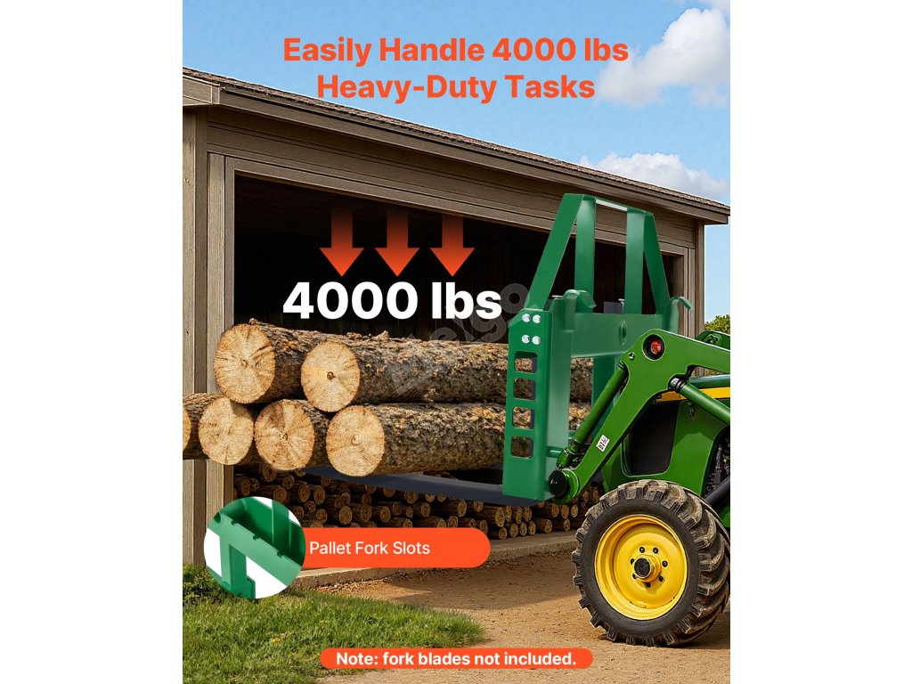 Tento rám paletové vidlice o nosnosti 4000 liber je určen pro řadu traktorů John Deere. Ideální pro přepravu balíků sena, stavebních materiálů a dalších věcí na farmách, zahradách nebo staveništích. Efektivní a spolehlivý pro náročné práce.