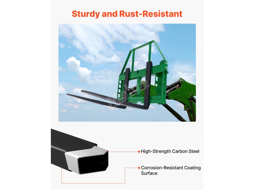 Zesílená deska rámu paletových vidlic je trvanlivá a odolná proti deformaci, bezpečně drží hroty vidlic na místě a zajišťuje bezpečnou přepravu těžkých předmětů.