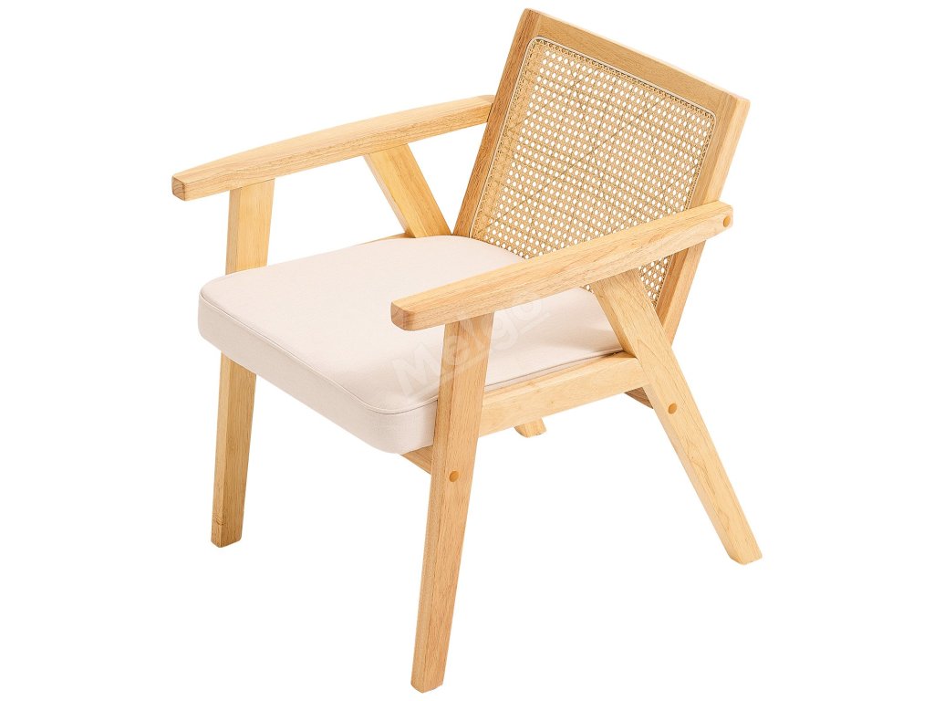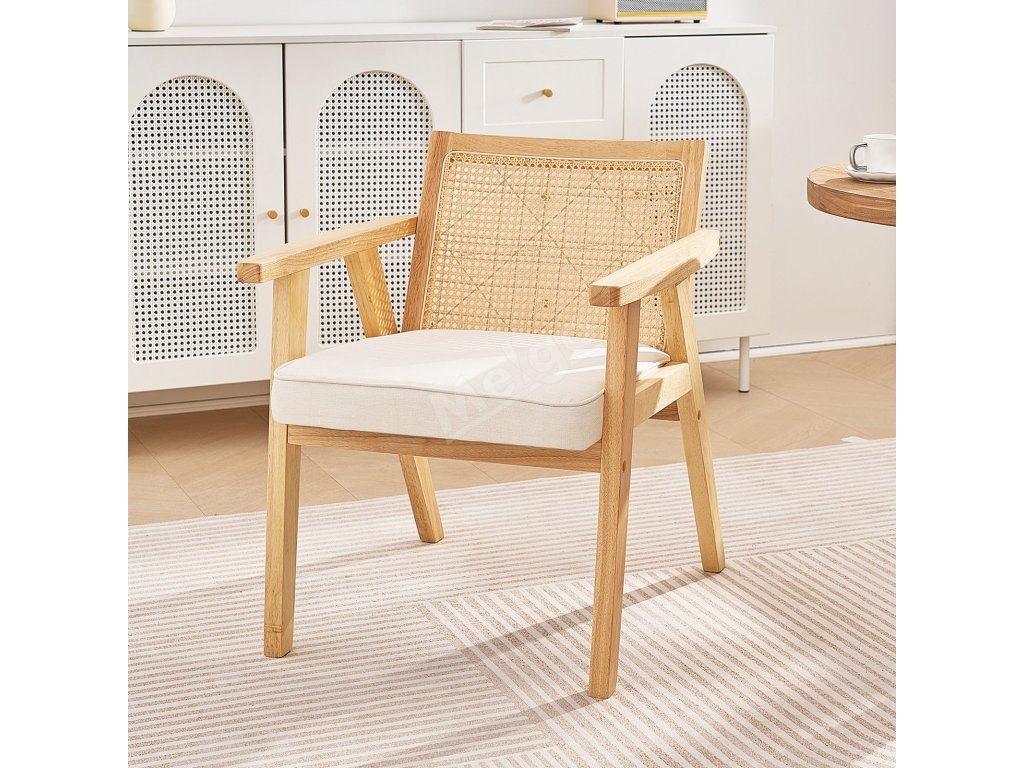 Ratanová čalouněná židle s opěrkami a ratanovým opěradlem, béžová