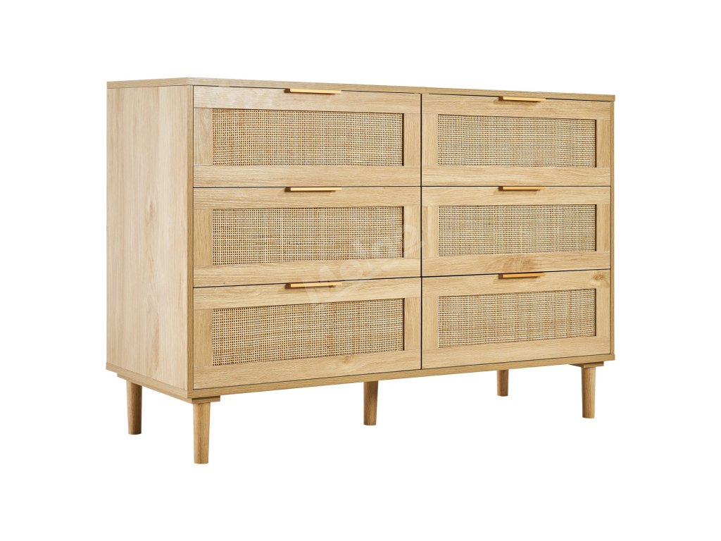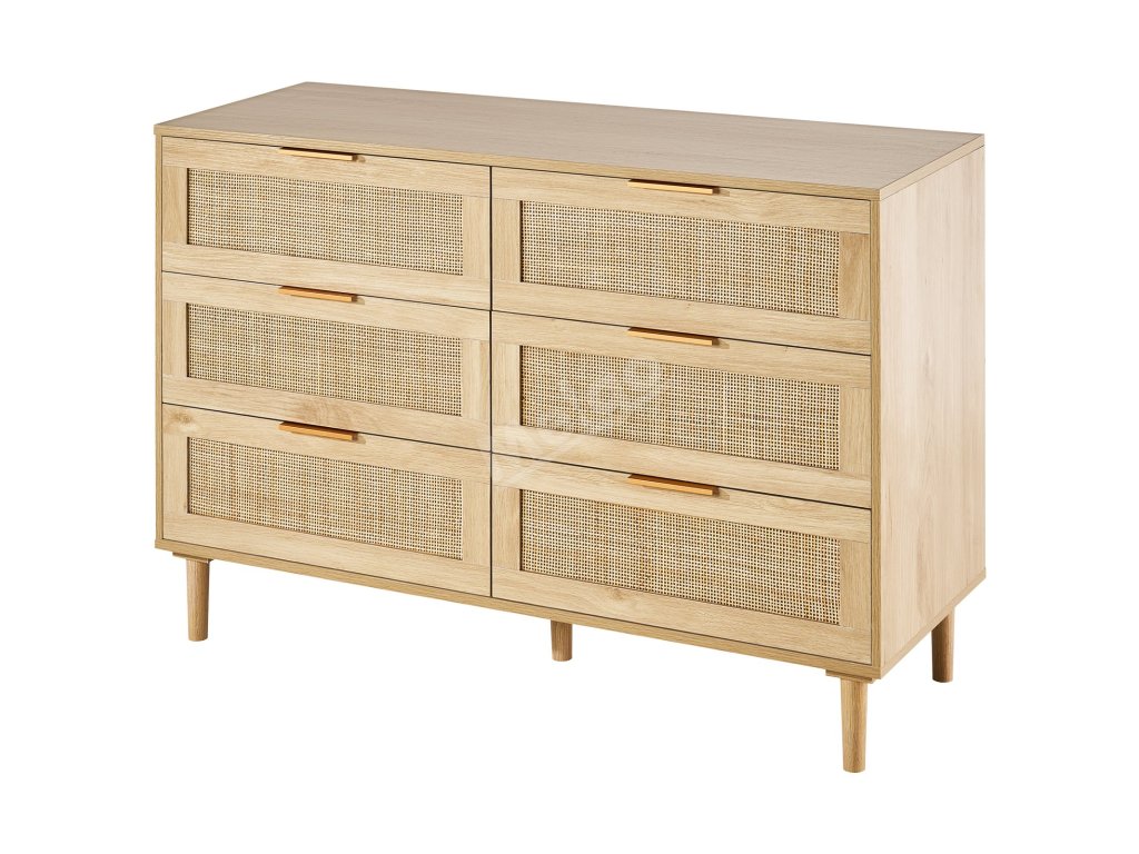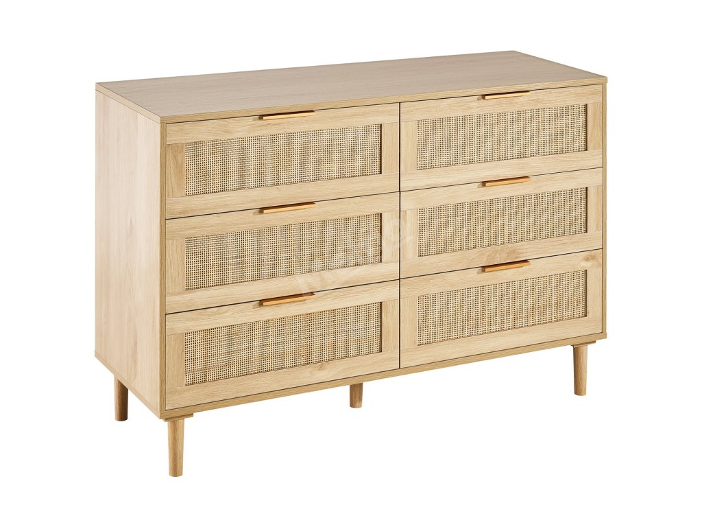 Ratanová komoda se 6 zásuvkami, přírodní ratan, hnědá, pevné nohy