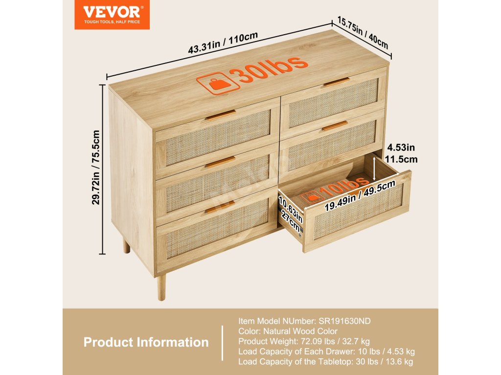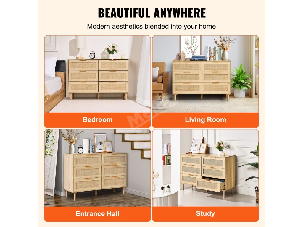 Ratanová komoda VEVOR kombinuje ratan s robustním dřevem a umožňuje uspořádat vaše věci. Je univerzální pro každou místnost, funguje jako toaletní stolek, noční stolek, televizní stolek nebo stolek v předsíni a dodá vašemu domovu šarm i praktičnost!