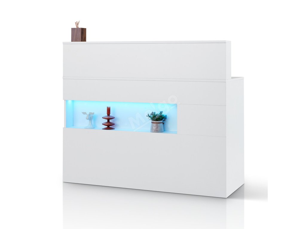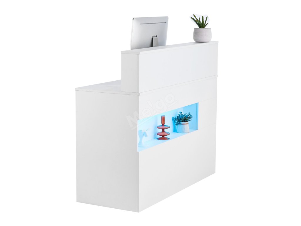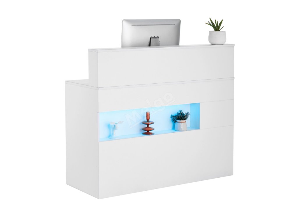 Náš recepční pult má elegantní design se zabudovaným LED osvětlením. Tato světla umocňují estetický dojem a vytvářejí příjemnou atmosféru. Zanechává trvalý první dojem a odráží moderní a profesionální image vaší společnosti.