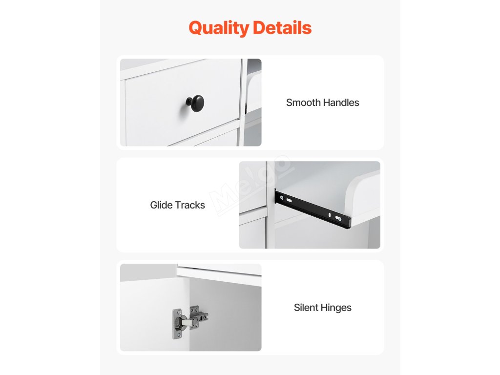 Tento recepční stůl je vyroben z robustních kovových posuvných lišt a odolného kování a odolá zkoušce času. Můžete se spolehnout, že zvládne každodenní používání bez obav z častých oprav.