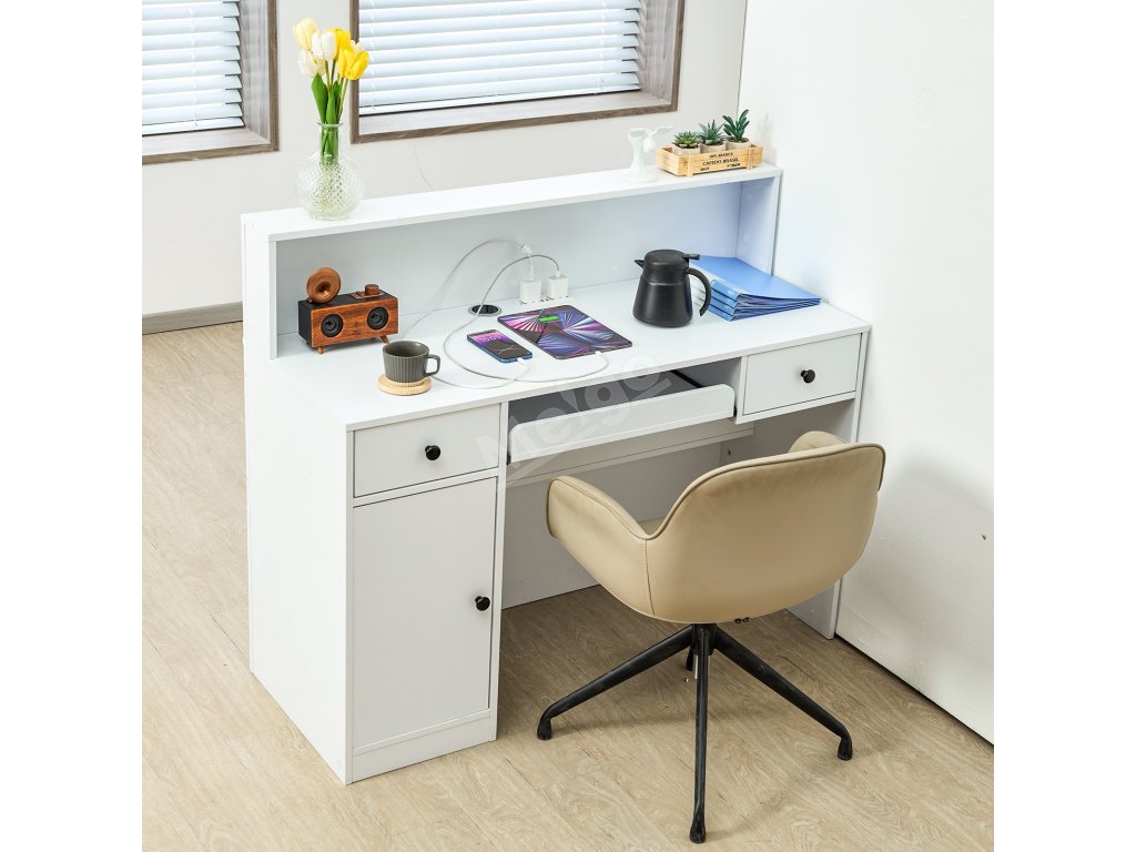 Recepční pult 47.24×18.7×39.37 in, led, 2 zásuvky, el. zásuvky, bílý