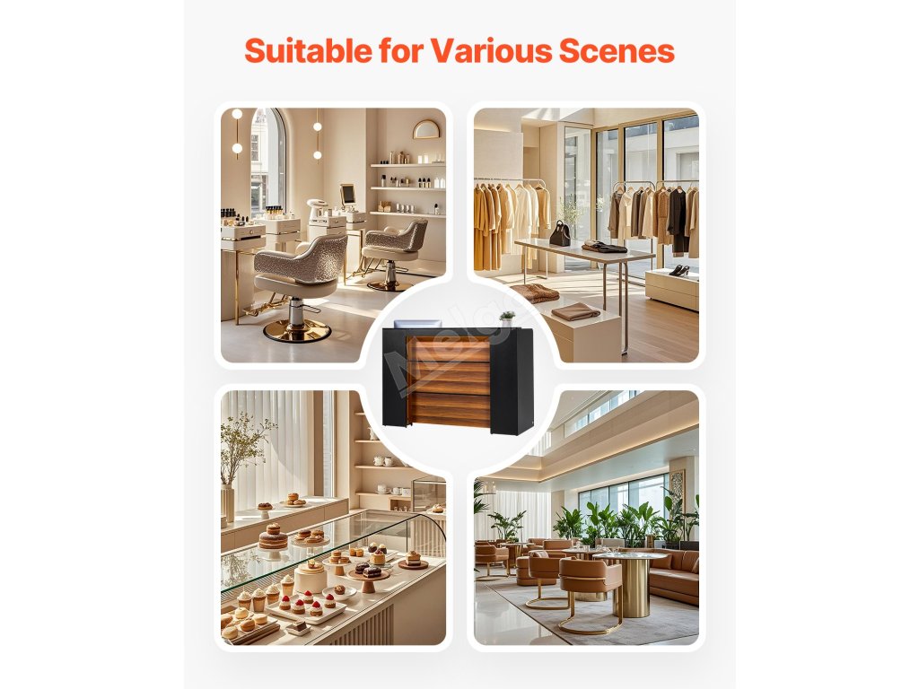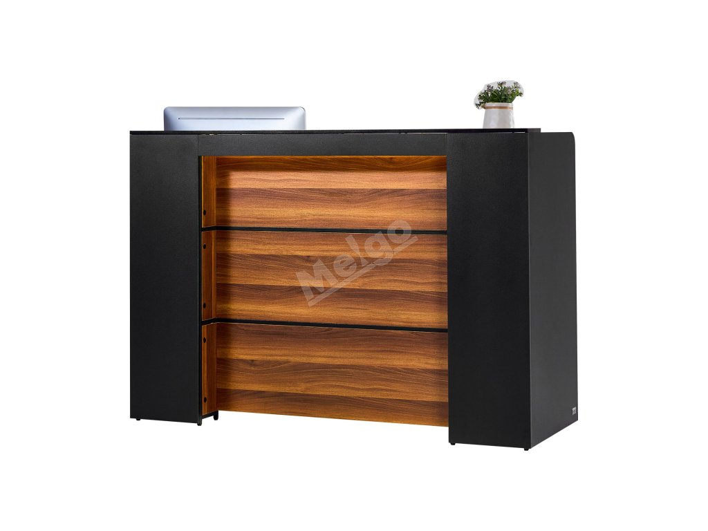 Tento recepční stůl je vyroben z desek s vysokou hustotou a je odolný vůči většímu tlaku a hmotnosti, což snižuje riziko deformace nebo poškození a zajišťuje dlouhodobé stabilní používání.