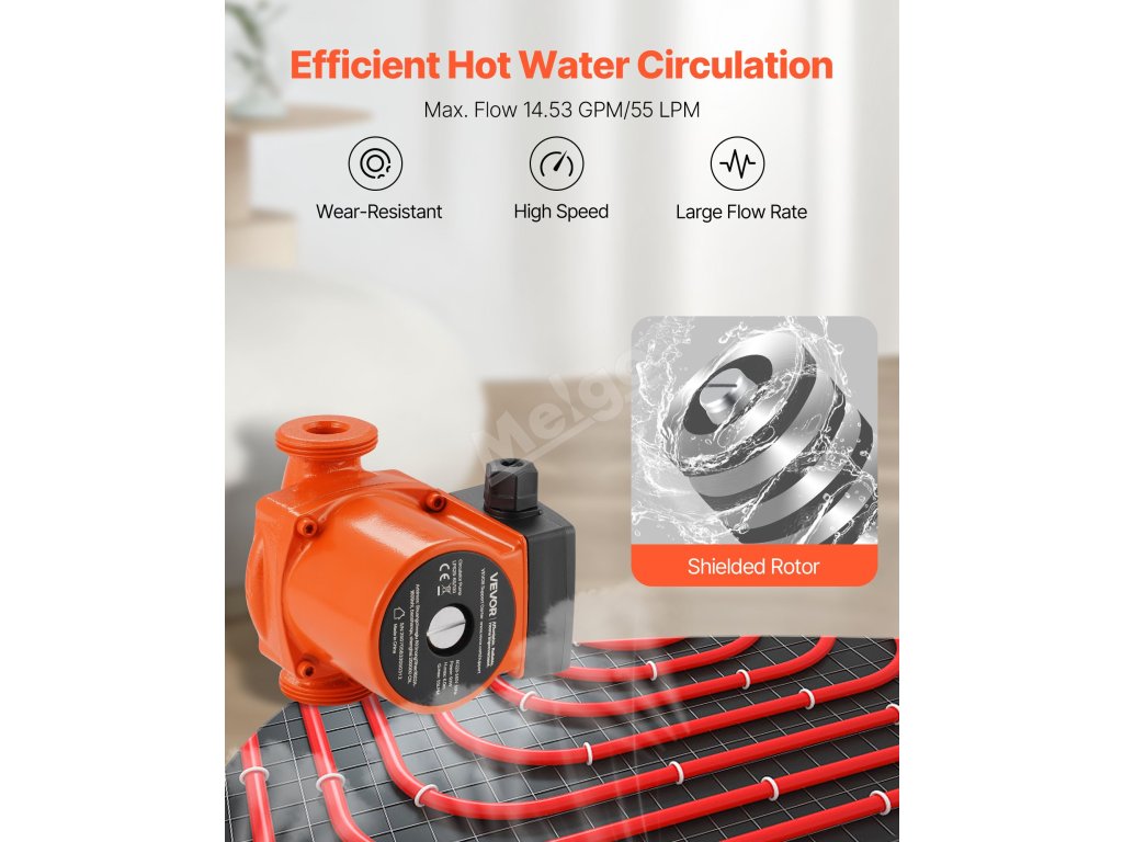 Toto oběhové čerpadlo teplé vody dosahuje vynikajících výsledků v oblasti regulace hluku s provozní hlučností 45 dBA. Nebude rušit váš každodenní život ani pracovní prostředí, zabrání nepříjemným pocitům způsobeným hlukem a zároveň zajistí plynulý a tichý provoz systému cirkulace teplé vody.