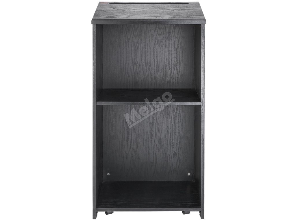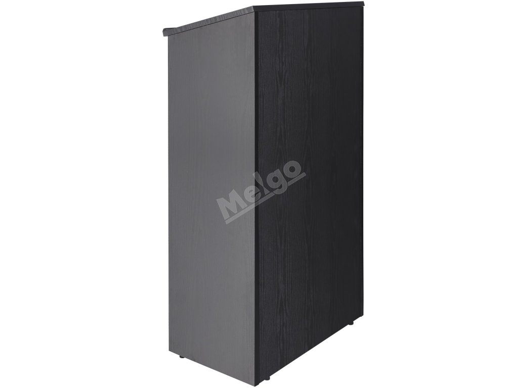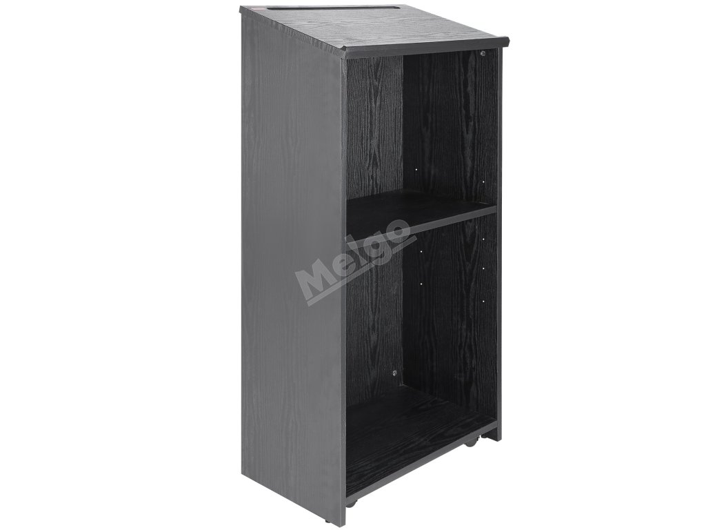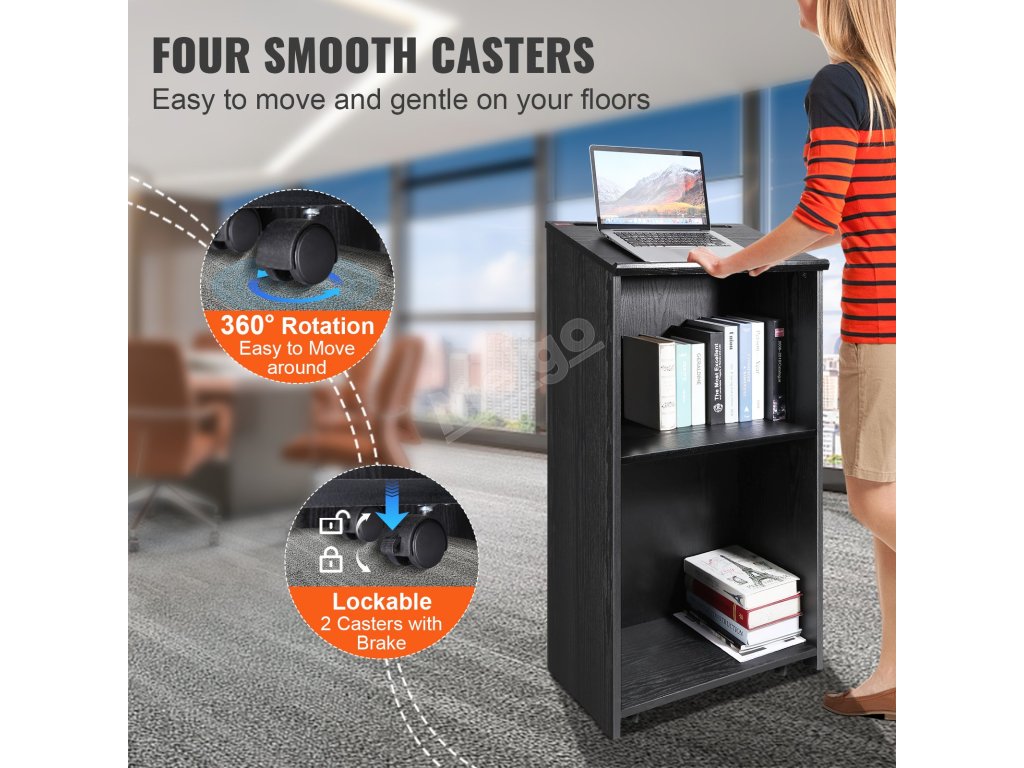 Řečnický pult s náklonem a policemi, 119 cm, 4 kolečka, dřevo, černá