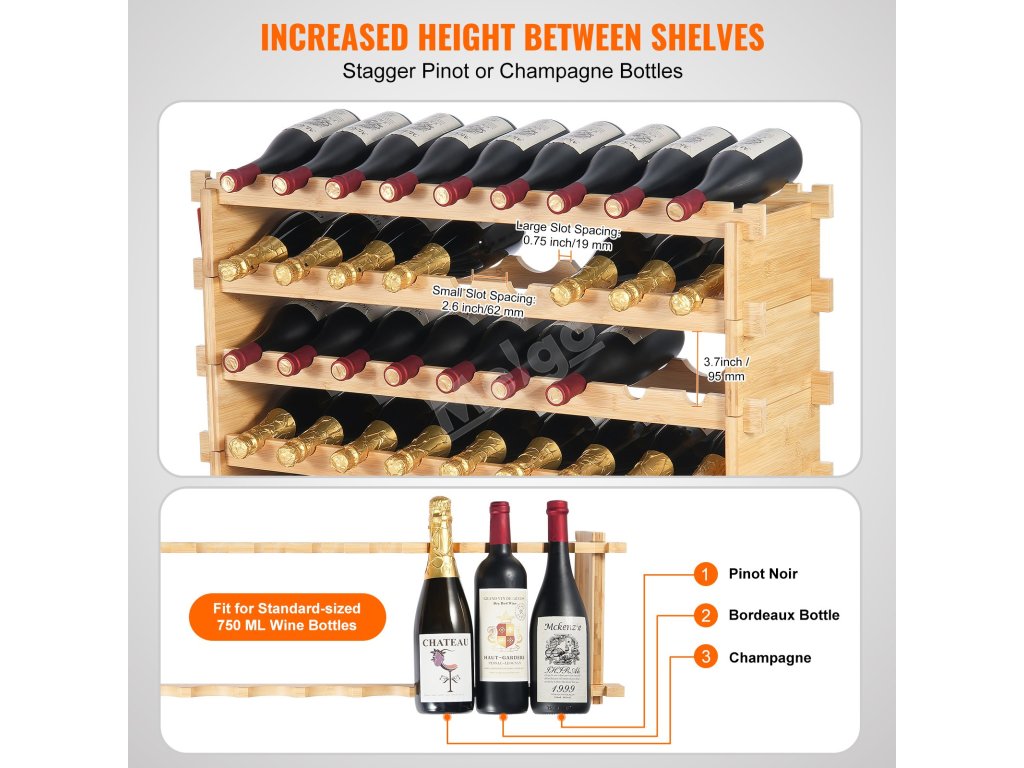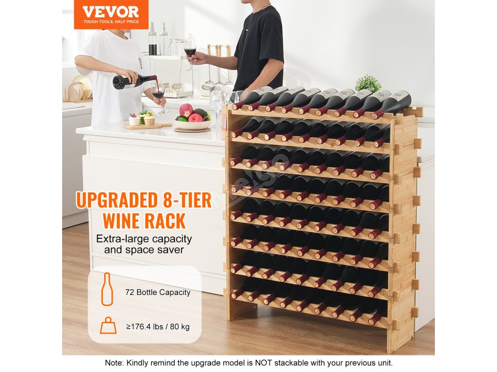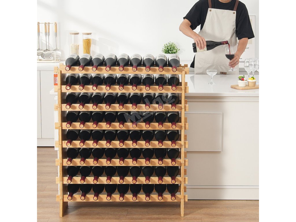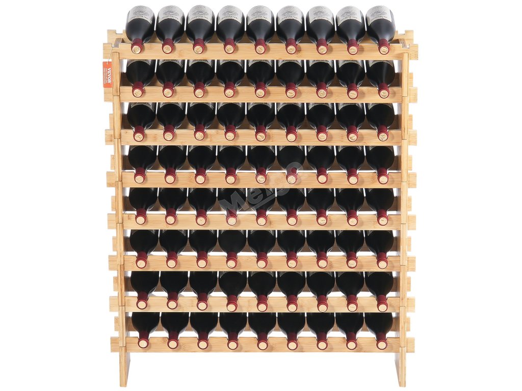 Regál na 72 lahví vína, modulární 8patrový bambusový stojací