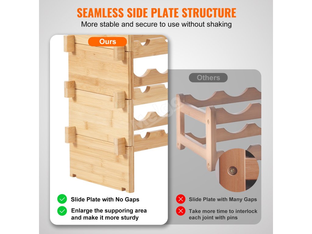 Tento stojan na víno je vyroben z prvotřídního bambusu, je hladký a odolný proti praskání. Přírodní bambus má dobrou pružnost a dokonale podpírá láhve s vínem, aniž by se kýval.